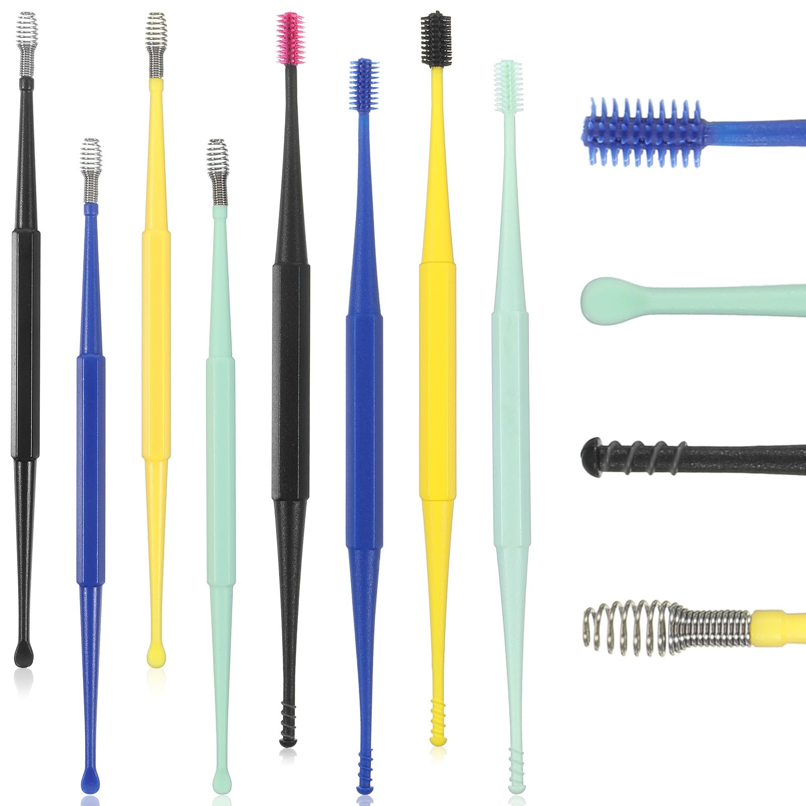 Product name: 8pcs double-headed spiral ear picks with 4 functions Color: black, blue, green, yellow Material: pp silicone stainless steel Size: Silicone: 14.3cm, Brush length: 1cm Stainless steel: 12.6cm, Packing method: bagged Packing list: 8pcs double-headed spiral ear picks with 4 functions (1 each of 4 colors for silicone, 1 each of 4 colors for stainless steel)