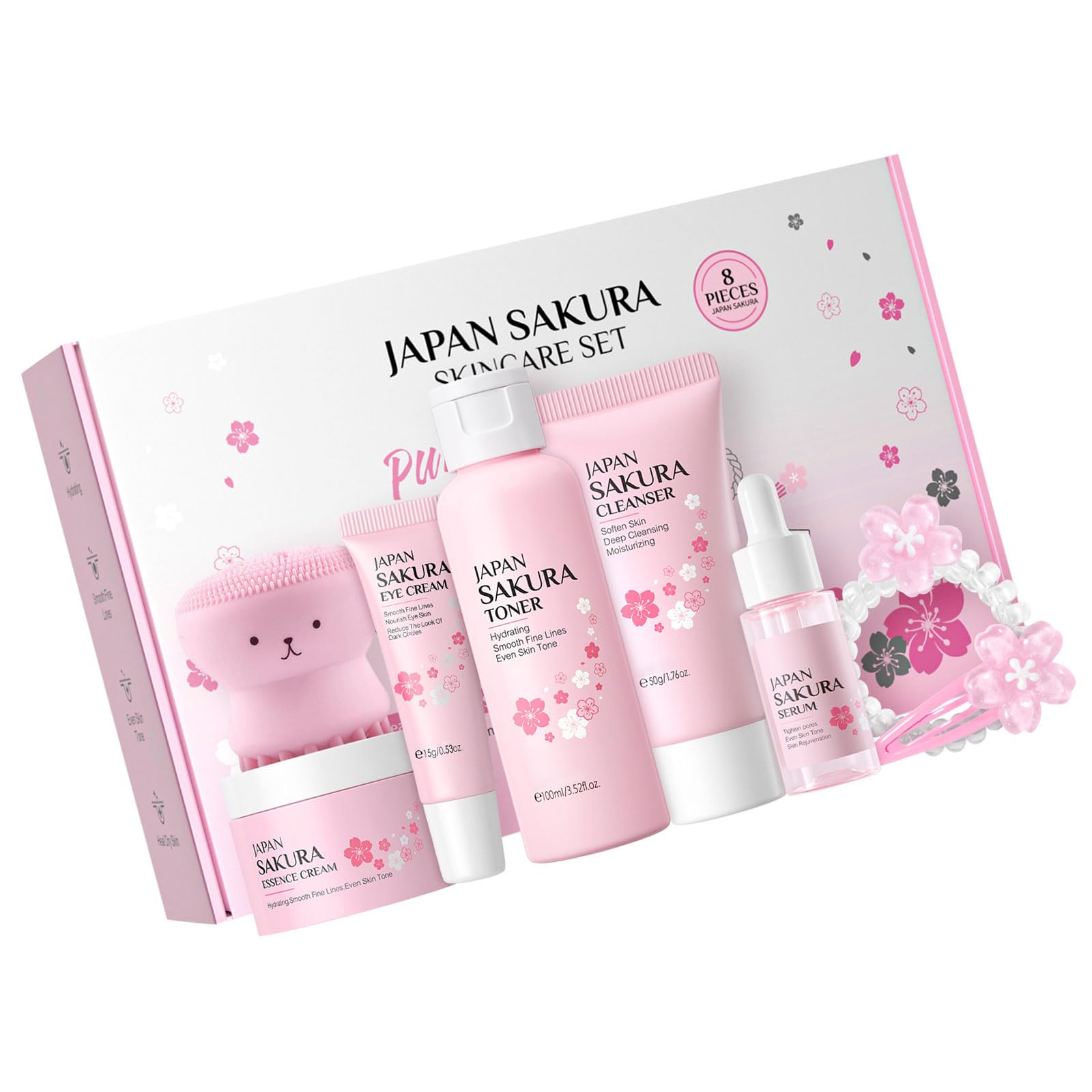 8 Pcs Moisturizing Skincare Set Flower Set With Cleanser Toner Serums Eye Cream Essences Cream