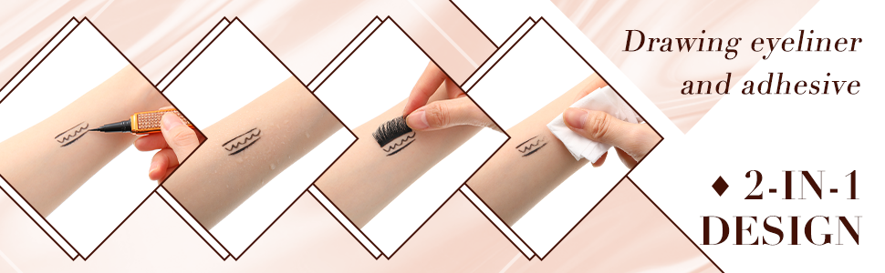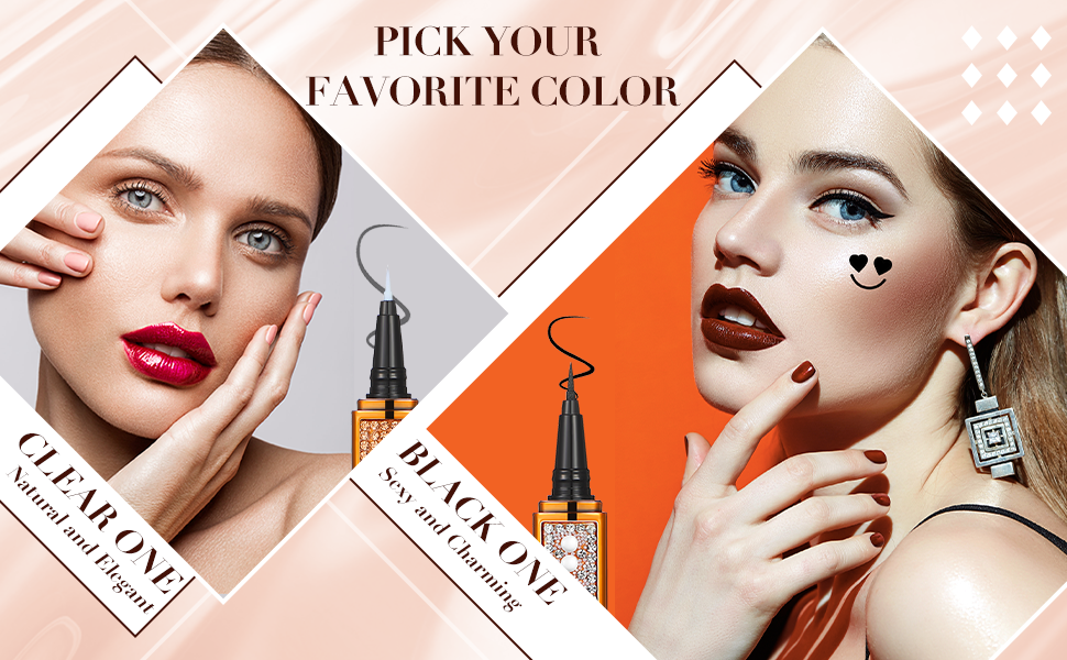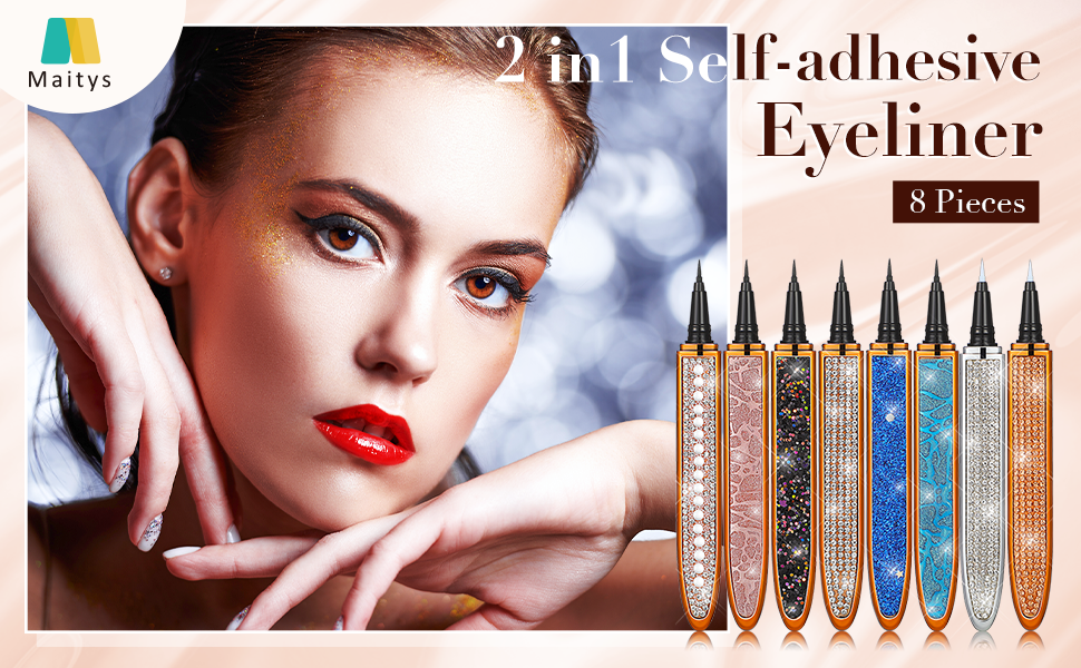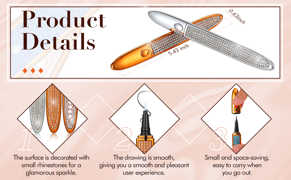 Glittering and elegant: some of these self-adhesive eyeliners are decorated with small rhinestones, glittering and charming, appealing and bling, easy to match with your cosmetic bags and handbags. 2 Different colors: these no glue no magnetic eyeliners come in 2 different eyeliner colors, black and clear, and the former color has 6 pieces, the latter color has 2 pieces; You can choose to use the color according to your needs. Smooth to draw: the 2 in 1 eye liner pen glides smoothly and continuously, convenient for you to draw beautiful eyeliner; It drys fast and quickly, providing you with a smooth and enjoyable user experience. 2 In 1 design: the diamond liquid eyeliner comes in 2 functions, drawing eyeliner and adhesive; After drawing eyeliner for about 10 seconds, you can stick your false eyelashes directly, no need for glue, saving you a lot of time to apply glue. What's included in the package: you will receive 8 pieces of self-adhesive eyeliners with different styles at one time; The quantity is enough, which can meet your needs for daily use; You can also share them with your good friends and sisters.