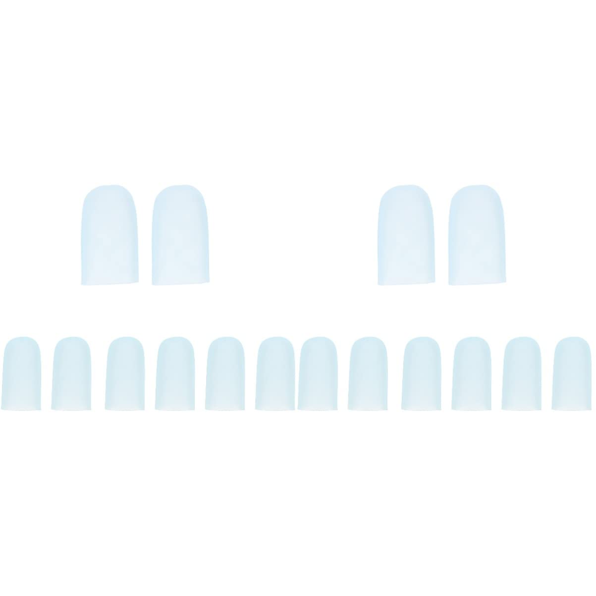 Package List 4 x pairs of toe covers Characteristics - A nice and considerate gift choice for your close friends or families. - For Bunions, Blisters, Stubbed Toe, Corns and Calluses recovery. - Reduce the pain caused friction between toe and shoes during walking and running. - - class silicone material with great flexibility holds its shape well. - Note: This product includes 2 sizes in total, 1 pair of large size and 3 pairs of middle size; bag package. - Packing size: About 13.00X11.00X2.00cm/ 5.12X4.33X0.79inch. - Material: Silicone. - Can effectively alleviate pain and corn of toes. - Color: Blue. Goods Information breathable corn protector These flexible and practical toe covers are a good choice to keep your toes from being scratched shoes and reduce pain caused blister, corn and more.toe tube cushion They are elastic and holds shape well, so they are suitable for many people use.silicone corn cushion Simply cut to appropriate size with scissors according to your needs