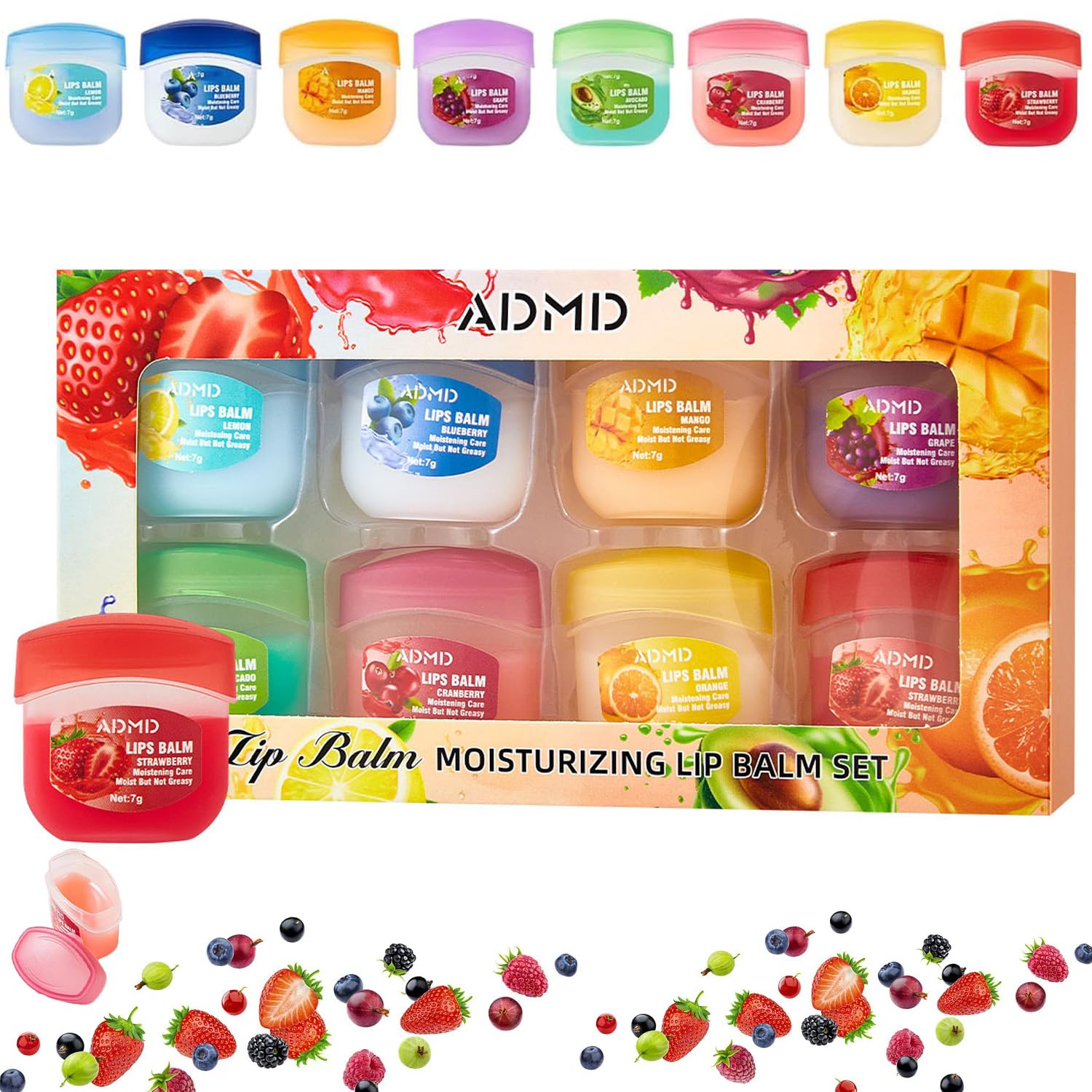 8Pcs Fruit Flavored Lip Care Set : Glosses Night Balms Colorless Lipsticks Moisturizing Masks – Perfect Party Seasonal Gifts! Specifications: Name: 8Pcs Fruit Flavored Lip Care Set Size: 1.4 0.8 1.4 in Weight: 3.53 ounces 7 g Number of Pieces: A box of 8 pcs Flavored:Strawberry Lemon Blueberry Cranberry Grape Avocado Orange Mango Package Includes: 1 2 3 Boxes Admd Lip Balm Set Note: 1.Please allow 0 1 inch error due to manual measurement. Thanks for your understanding. 2.Monitors are not calibrated same, item color displayed in photos may be showing slightly different from the real object.Ideal Gift Choice : Pondertion Worthwith Lip Balm Set makes a thoughtful present for loved ones—perfect for birthdays, Christmas, Thanksgiving, or any special occasion. Perfect for those looking for a quick, easy way to care for their lips. Thoughtful Design : The admd lip balm set boasts a sleek, minimalist design that's compact and adorable—ideal for everyday use or gifting. It perfectly balances elegance and practicality, making it convenient to carry and apply anytime. Restorative Benefits : 8PCS Fruit Flavored Lip Care Set Beyond hydration, it effectively addresses common lip concerns such as dryness, flaking, dullness, and fine lines—enhancing both moisture and elasticity for healthier-looking lips. Deep Moisture Care : 8-in-1 fruity lip set, formulated to absorb quickly, this lip mask deeply nourishes and hydrates your lips. With continued use, your lips will feel noticeably softer, smoother, and more supple. Perfect Blend : This 8PCS Fruit Flavored Lip Care Set collection features eight delightful flavors—mango, grape, blueberry, orange, avocado, strawberry, cranberry, and lemon. It provides lasting moisture throughout the day, offering a lightweight, non-greasy feel with a naturally tinted finish.