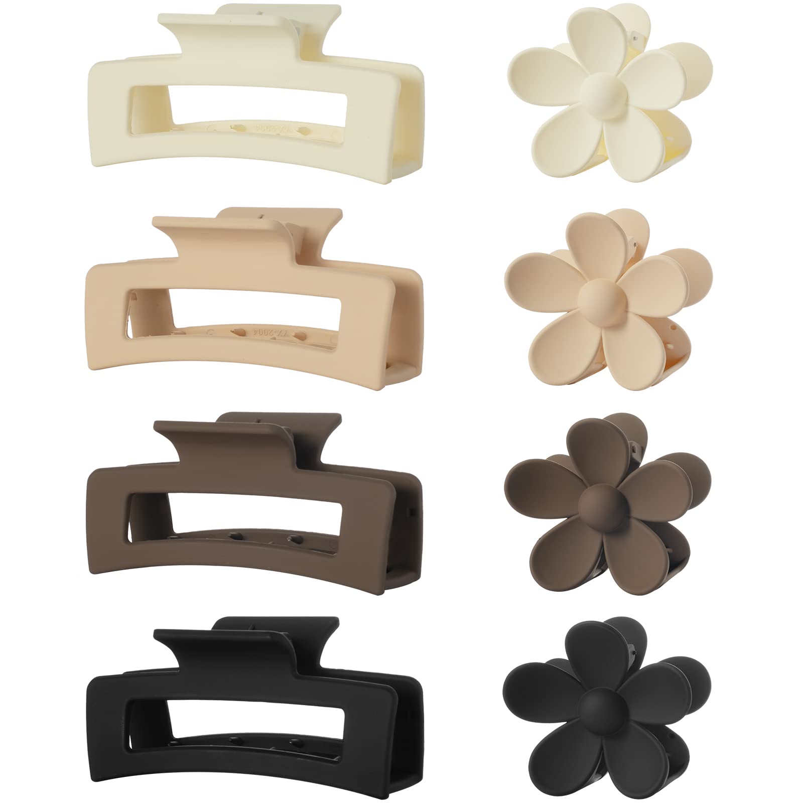 Easy to Use & Non Slip: The powerful metal spring and the interlocking teeth design allows the matte claw clips to hold your hair firmly and won’t hurt your scalp. Fast hair arrangement, provides you a casual or formal hair style. Best Gift Choice: The claw clip pack comes with 8pcs hair claws 4 colors, is a perfect gifts for women and girls. Suitable for Valentine's Day, Mother's Day, Thanksgiving, Christmas, Birthday, Anniversary, Wedding or as a surprise for your wife, mom, sister, girlfriend, or yourself. Widely Use: The jumbo claw clip are great for all hair types,thick or normal and thin hair. Keep hair tidy during taking a shower, doing housework, cooking, dating, facial cleaning and working or else. Very suitable for party, birthdays, banquets and any other daily using. Upgrade Grip & Sturdy Material: These medium hair clips are made of high-quality plastic materials and powerful metal spring, very strong and soft, hard to break, the best durable material without feeling too heavy,very comfortable to use. Two Different Styles: 8 pack hair clips includes 4 medium rectangle claw clips and 4 flower hair claw clips with the same color, which can match different styles of outfits and occasions. The medium size is the perfect size to hold all hair, like thick or thin hair, curly or straight hair.GTIN: 755467700092. Best Sellers Rank: See Top 100 in Beauty & Personal Care. Material: Plastic, Metal. Embellishment: Flower. Age Range (Description): Adult. Hair Type: All, Curly, Straight. Brand: Generic. : B0BRSMXHRD. Manufacturer: Fasbeu. UPC: 755467700092. Package Dimensions: 8.11 x 5.75 x 3.23 inches; 5.93 Ounces.