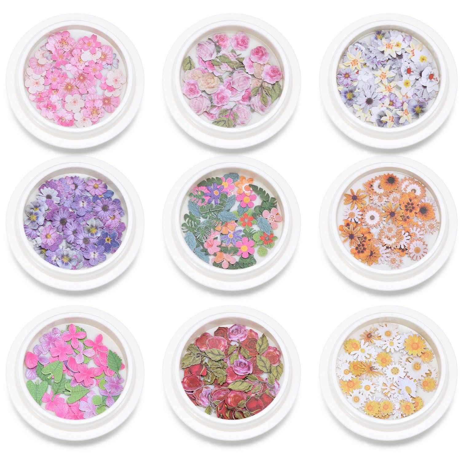 9 Boxes Nail Accessories Daisy Flowers Designs Wood Pulp Flakes Romantic Rose Ultrathin Nail Paillettes Holographic Nail Art Sequins