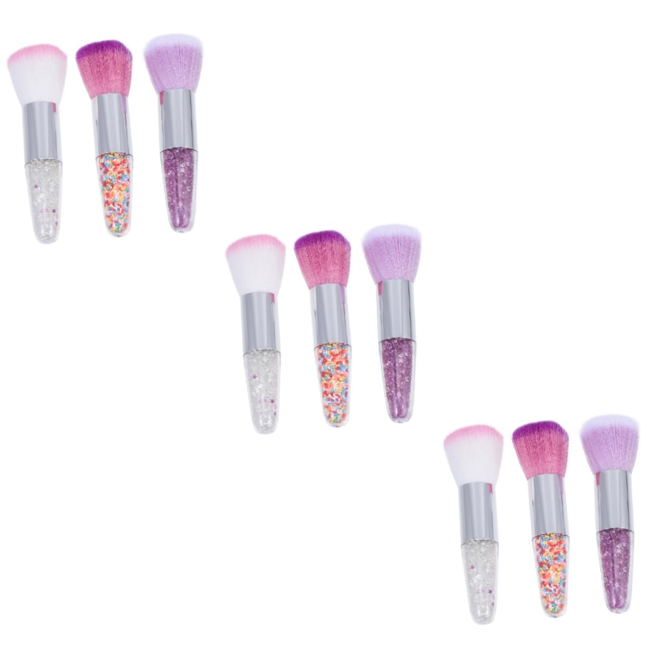 9 Pieces Makeup with Transparent Handle Nail Brush Makeup Brush Powder Makeup Brush Blush for Cheeks Foundation Brush Makeup Accessory Diamond Makeup Tools