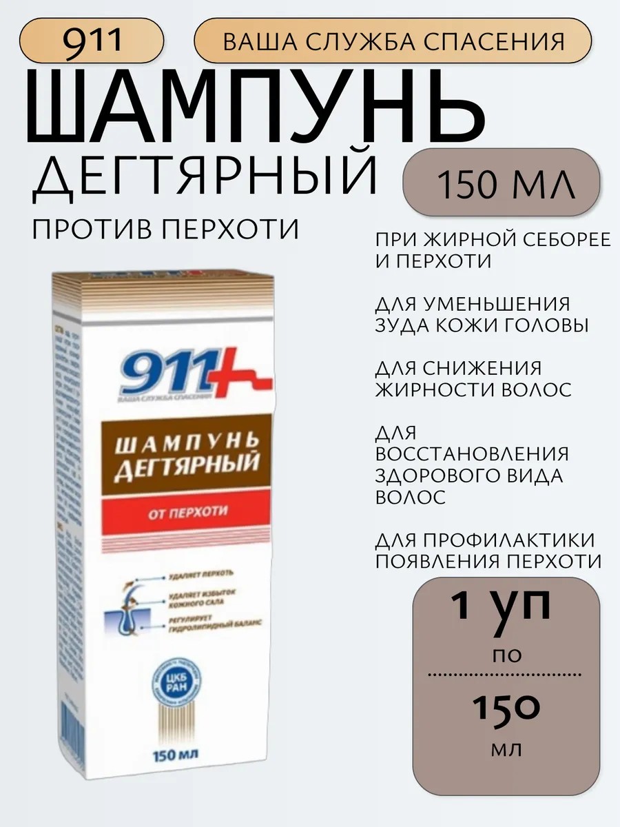 | Полное наименование товара | 911 Шампунь дегтярный от перхоти 150 мл |