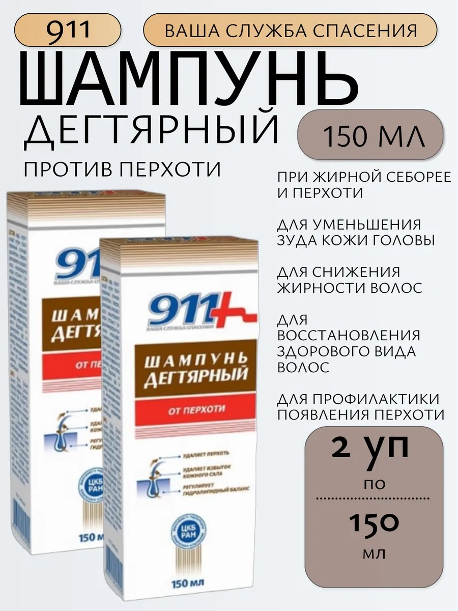 911 Шампунь от перхоти дегтярный 150 мл - 2 шт