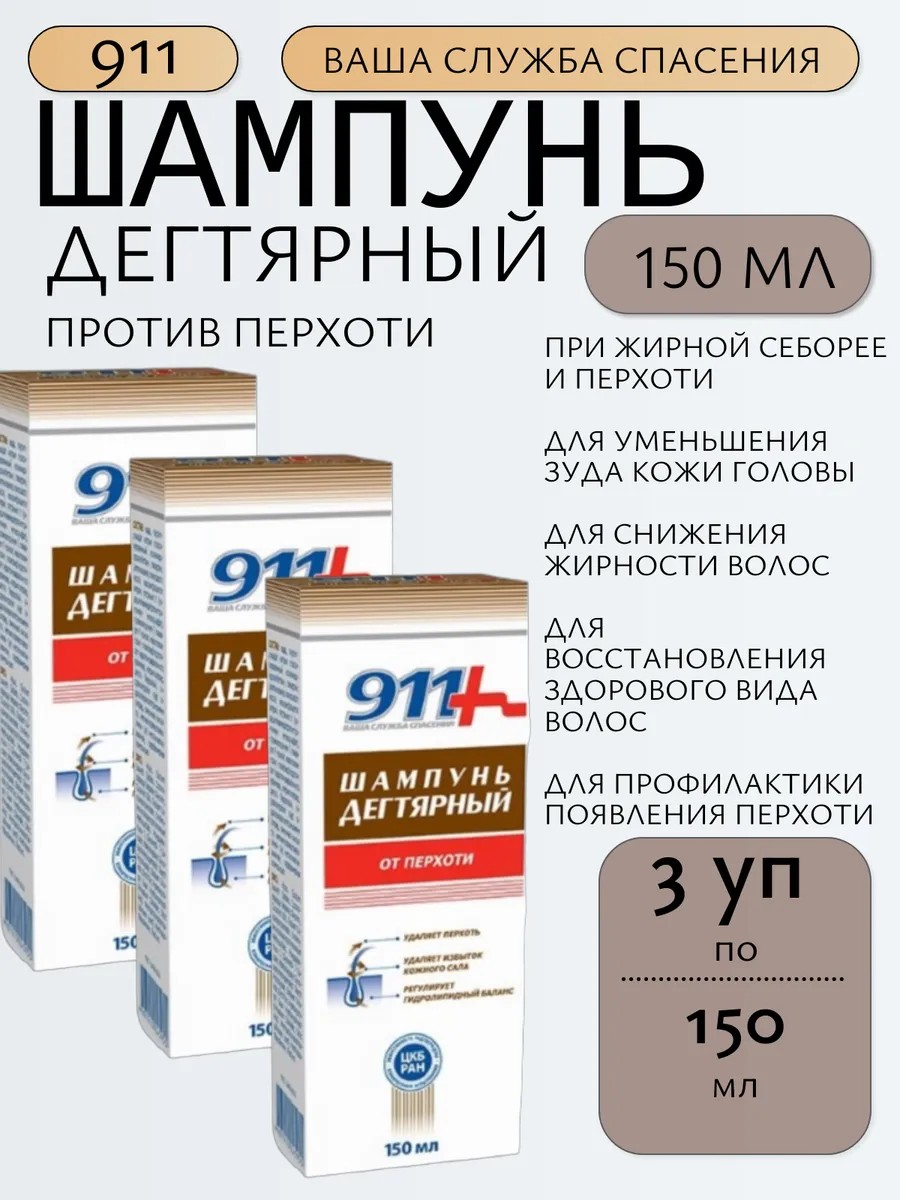 911 Шампунь от перхоти дегтярный 150 мл - 3 шт