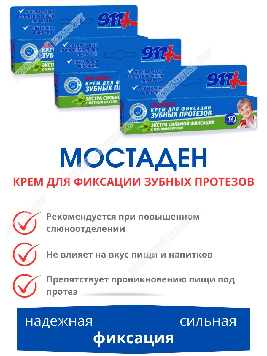 911 Экстрасильный Мостаден для зубных протезов мята 3 шт.