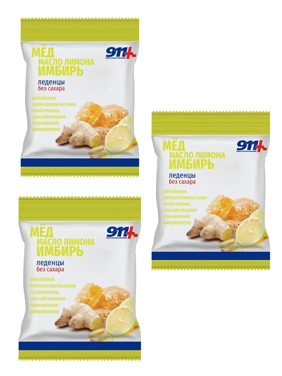 911 Ваша служба спасения леденцы мед имбирь с витамином с без сахара леденцы массой 2,5 г 50 гр Содержание в рекомендованной дозе (5 шт леденцов):