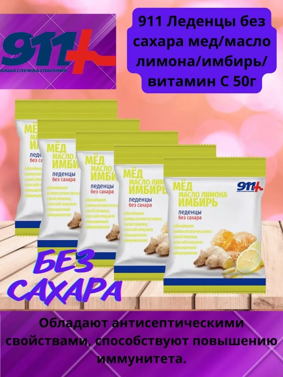 911 Леденцы без сахара Мед Масло лимона Имбирь ВитаминС-5уп