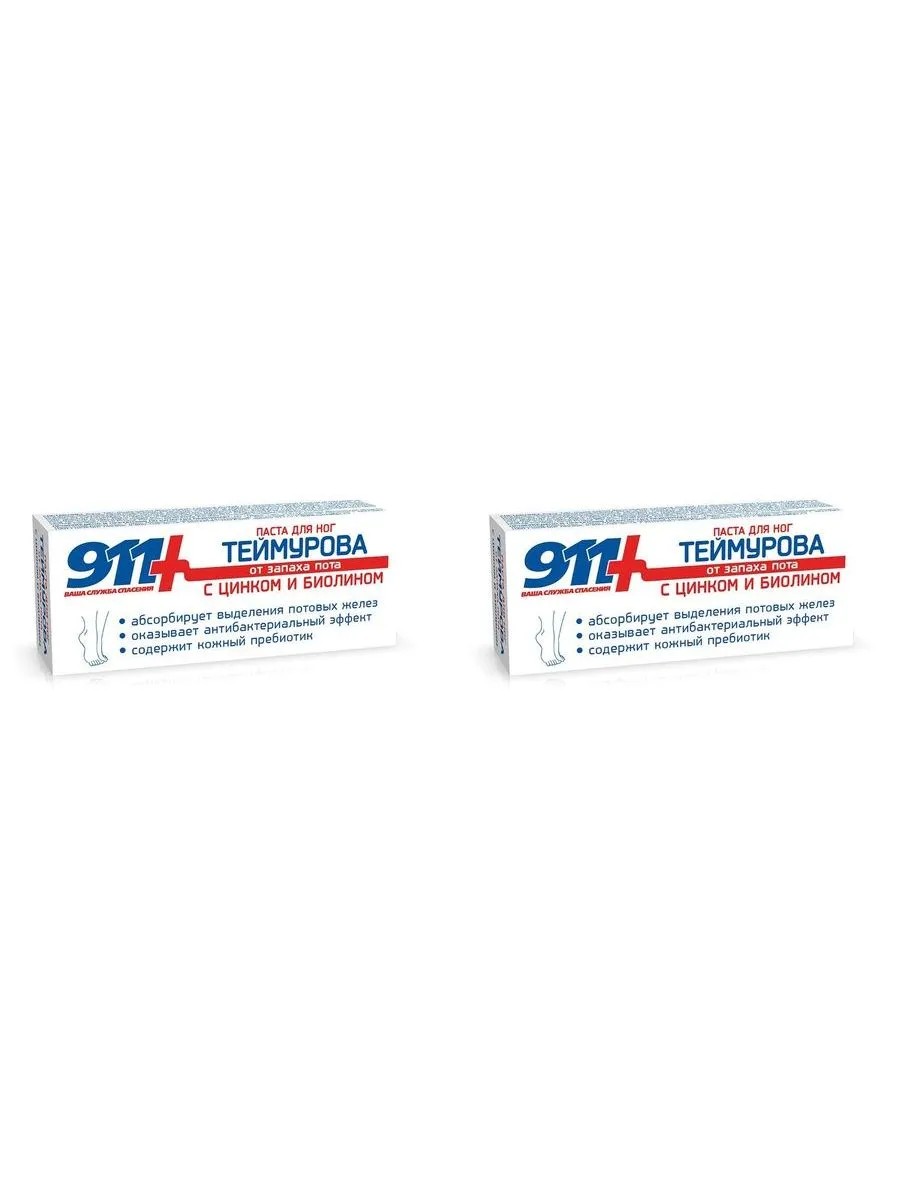 911 паста д/ног теймурова 50мл. абсорбирует выделения потовых желез для ног, от пота и запаха с цинком и биолином 911 паста для ног теймурова - от запаха пота с цинком и биолином товарного знака «911 ваша служба спасения»-абсорбирует выделения потовых желез?-оказывает антибактериальный эффект?-содержит кожный пребиотикпаста для ног «теймурова» рекомендована для ежедневного применения с целью устранения запаха и избыточной потливости ног.оказывает антибактериальный эффект.входящий в состав биолин (кожный пребиотик) регулирует баланс кожи за счет стимулирования и поддержания защитных микроорганизмов на ее поверхности.нанести средство на чистую и сухую кожу ступней, включая межпальцевые складки, утром и вечером, а также по мере необходимости в течение дня, дать впитаться.меры предосторожности: не наносить на поврежденные участки кожи.