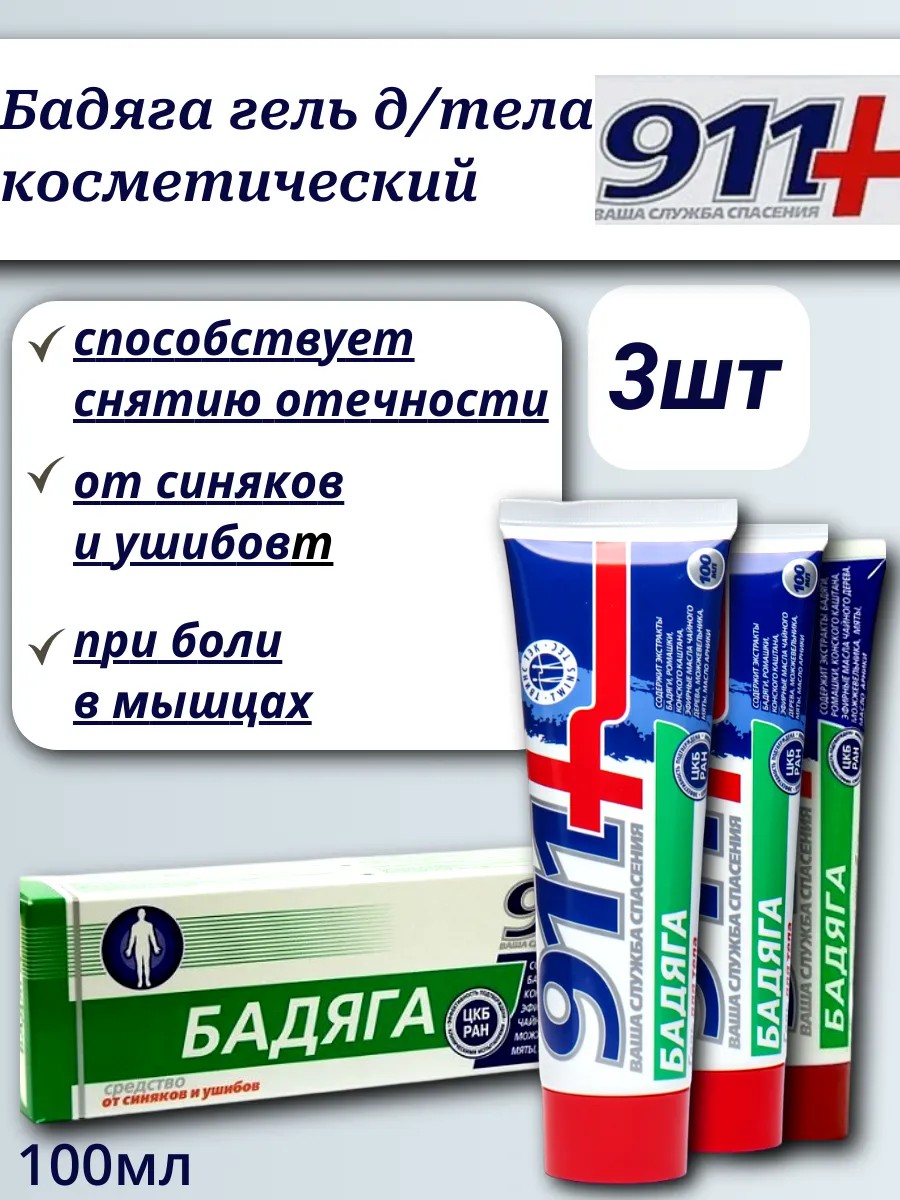 911 Ваша служба спасения 911 Бадяга гель для тела косметический 100мл-3шт
