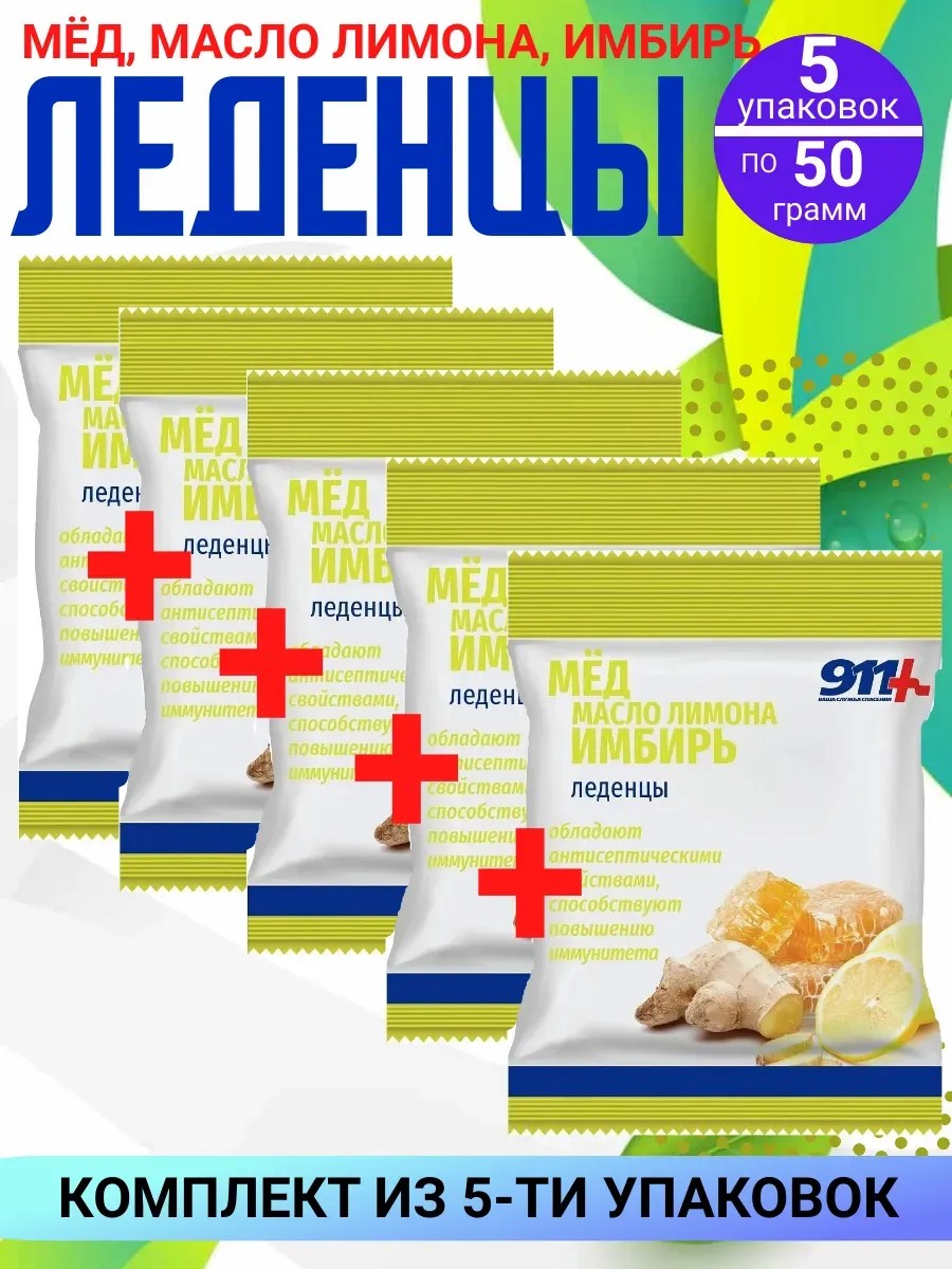 911 Ваша служба спасения 911 леденцы (мед, лимона,имбирь) 5 упаковок по 50 гр