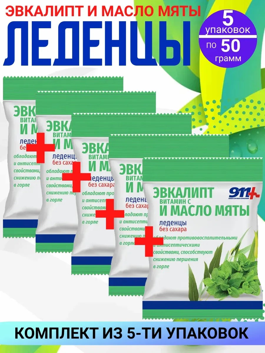 911 Ваша служба спасения 911 Леденцы эвкалипт с витамином С и маслом мяты, 5 упаковок