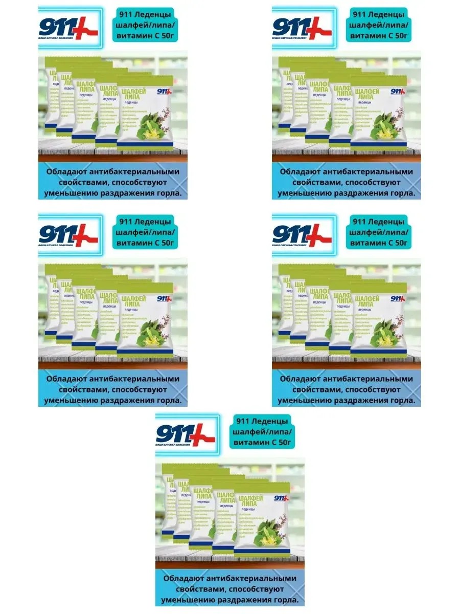 911 Ваша служба спасения 911 Леденцы шалфей липа с витамином, , шт. 50г 2,5г -6 уп.