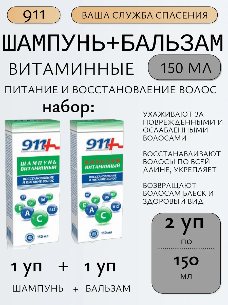 911 Ваша служба спасения Набор: Шампунь и бальзам витаминные по 150мл-1уп+1уп