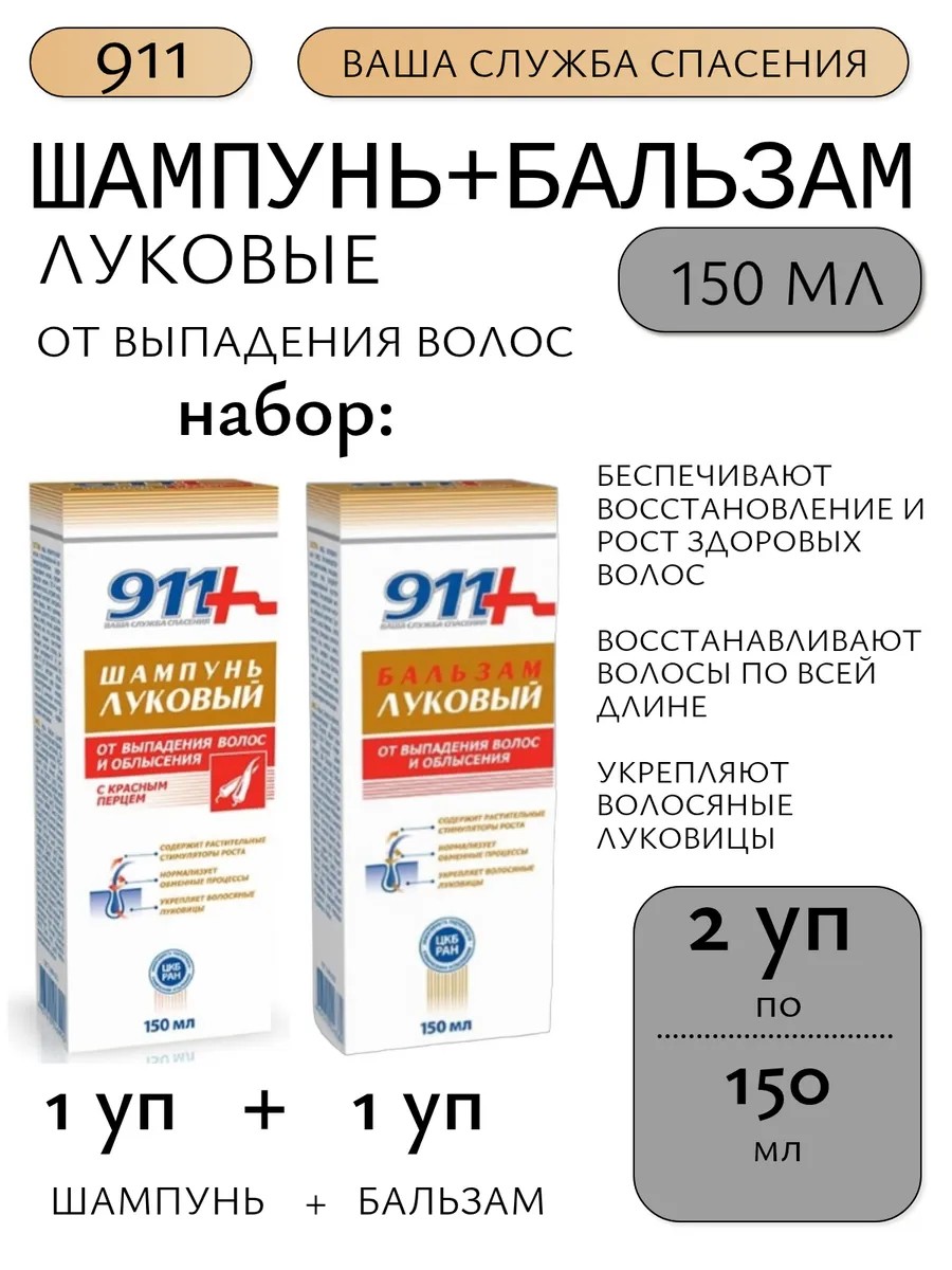 911 Ваша служба спасения Набор: Шампунь и бальзам луковые по 150мл-1уп+1уп