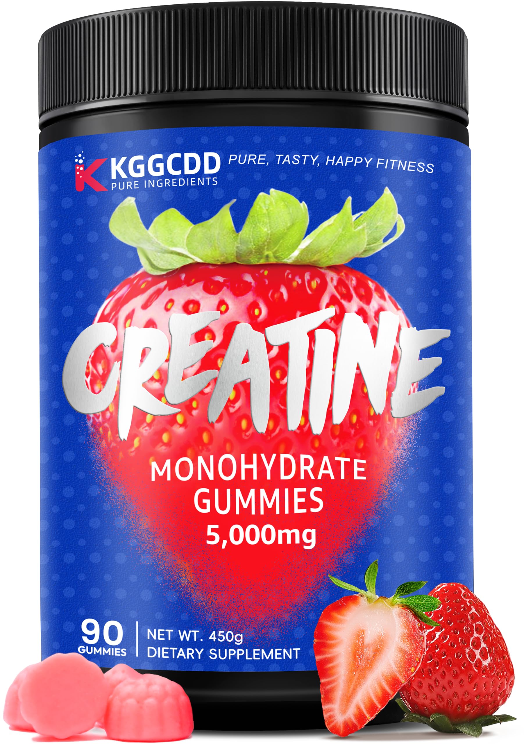 CONVENIENT TO TAKE: 30 days of strong support, 3 gummies per serving with 5g of creatine monohydrate, 90 gummies in total. TRUSTED: KGGCDD creatine monohydrate gummies are tested by Eurofins. No artificial additives, sugar free, gluten-free, vegan, non-GMO, No common allergens. PERFORMANCE SUPPORT: Supports lean muscle, strength, endurance, post-training recovery and mental clarity. TASTY GUMMIES: Enjoy delicious strawberry-flavored creatine gummies for women men with powder-grade effect. 99.99 PURE CREATINE: The creatine gummies are made with 99.99 pure creatine monohydrate and verified by third-party testing for purity and safety.