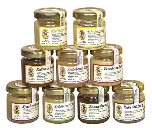 9x 50g de dégustation de miel Coffret cadeau - miel naturel à connaître, la combinaison varie (du rucher Nordheide)