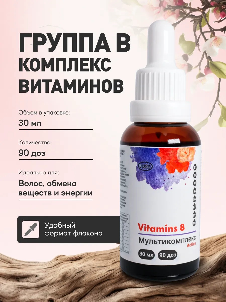 | Комплектация | Витамины группы B1, B2, B3, B5, B6, B7, B9, B12 Мультикомплекс Актив А-БИО, 30 мл |