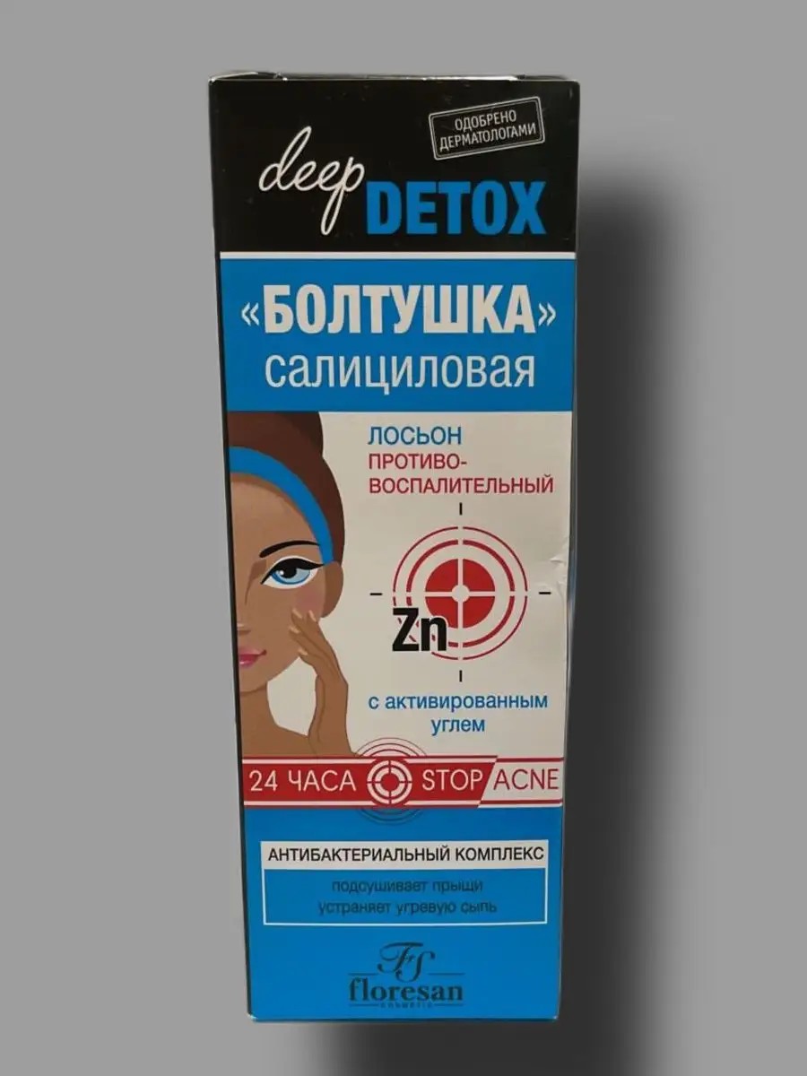 Салициловая болтушка – одно из лучших средств для кожи, склонной к акне и является хорошей профилактикой от появления прыщей. Эффективно очищает, снимает воспаления и угревую сыпь. Антибактериальный комплекс с салициловой кислотой и цинком снижает уровень жирности кожи, подсушивает прыщи и сужает поры. Лечебные экстракты зверобоя, чабреца и шалфея успокаивают кожу, препятствуя возникновению новых воспалений. При систематическом использовании лосьона Ваша кожа будет светиться здоровьем и приобретет ухоженный вид.