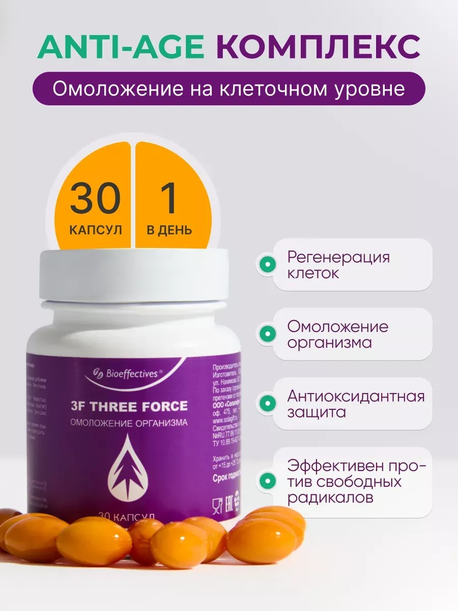 | Trade name | Biologically active food supplement "3F three force" (740 mg capsule) |