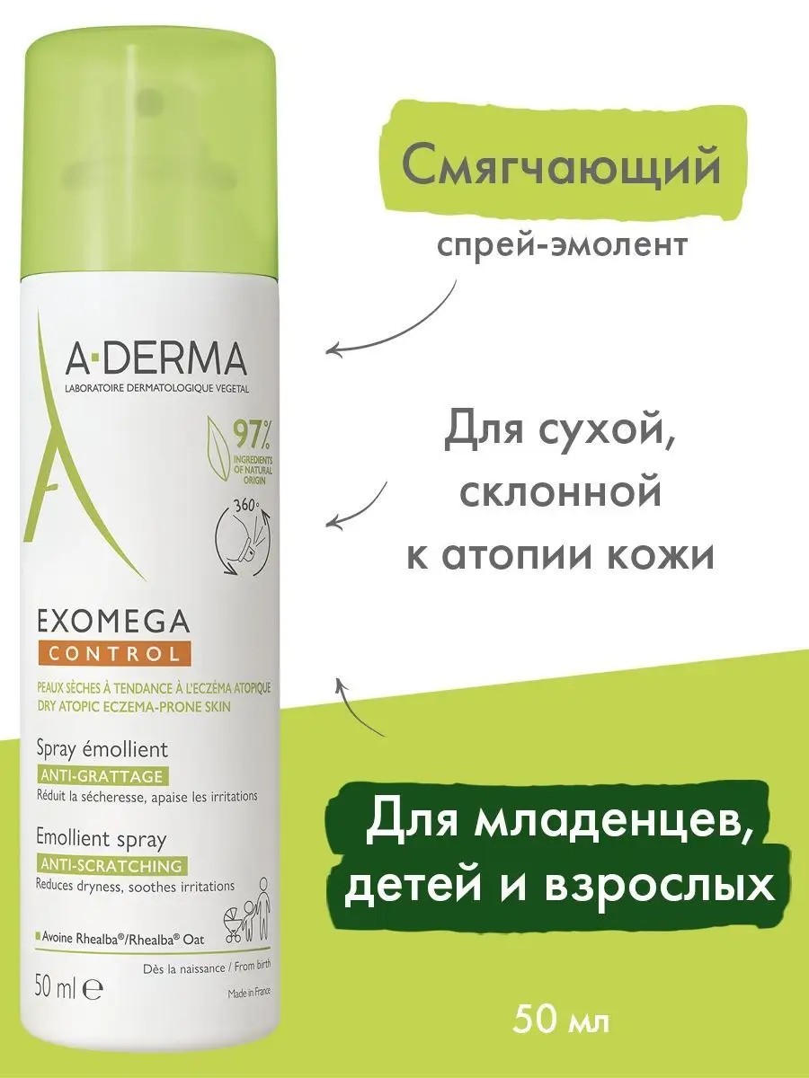 A-derma EXOMEGA CONTROLСмягчающий спрей-эмолент 50 мл Экзомега