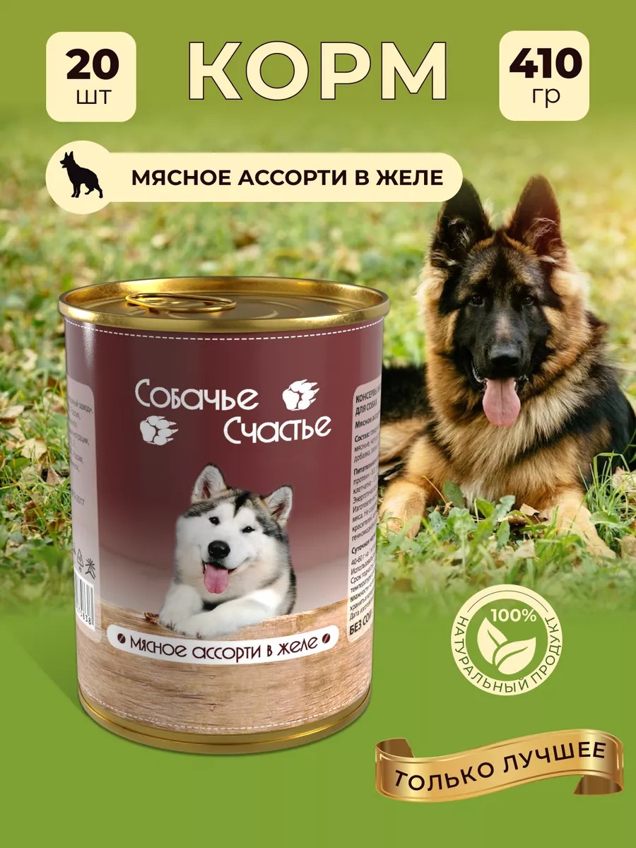 Собачье Счастье Влажный корм для собак Мясное ассорти 20 банок по 410 гр