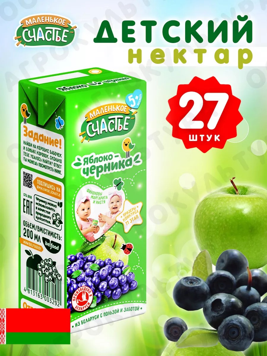 Детский нектар яблоко черника от ТМ "Маленькое счастье" - идеальный выбор для здорового и вкусного детского питания. Каждая упаковка включает в себя 200 мл нектара из натуральных фруктов, без добавления консервантов, ГМО, красителей и искусственных добавок. Детский нектар - это полезный продукт, который содержит множество витаминов и минеральных веществ, необходимых для здоровья и развития малыша, удобная упаковка и трубочка позволяет ребенку пить сок без проливов. Он сертифицирован по системе эко-продукт, что гарантирует высокое качество и безопасность для детей. Отличное решение для детского праздника, выпускного в детском саду, или дня рождения.