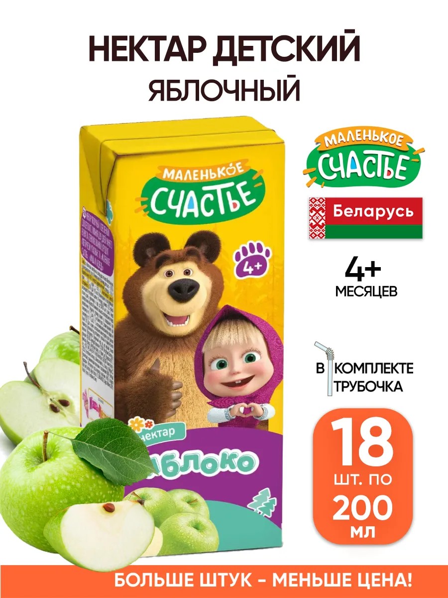 Представляем вам детский восстановленный сок белорусского бренда "Маленькое Счастье" из серии Маша и медведь 200 мл. Вкус - яблоко.