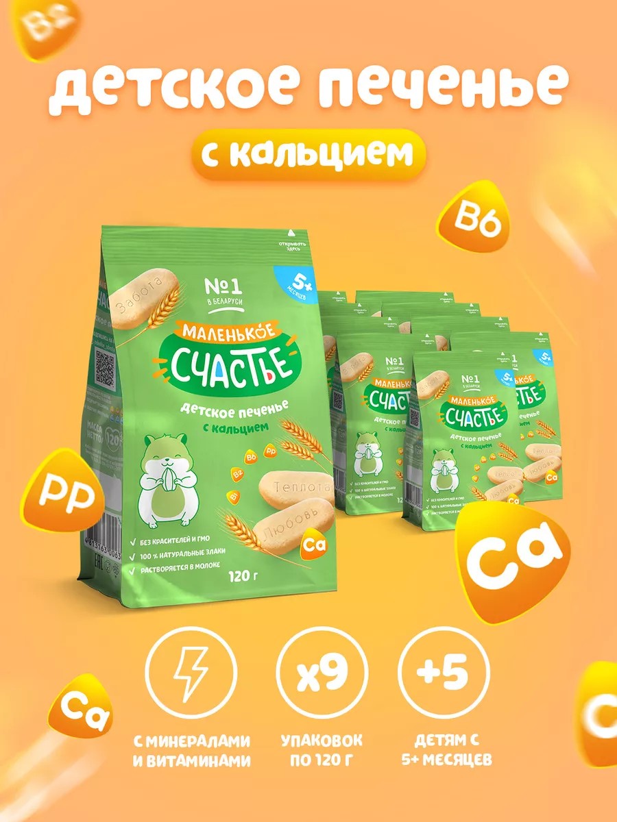 Маленькое счастье Детское печенье растворимое с кальцием 9 шт по 120г
