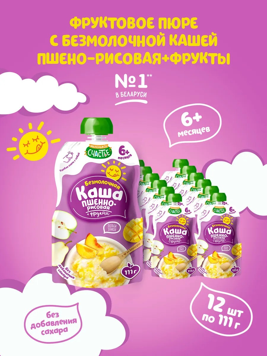 Маленькое счастье Пюре детское фруктовое с кашей пшено-рисовой 12 шт по 111 г