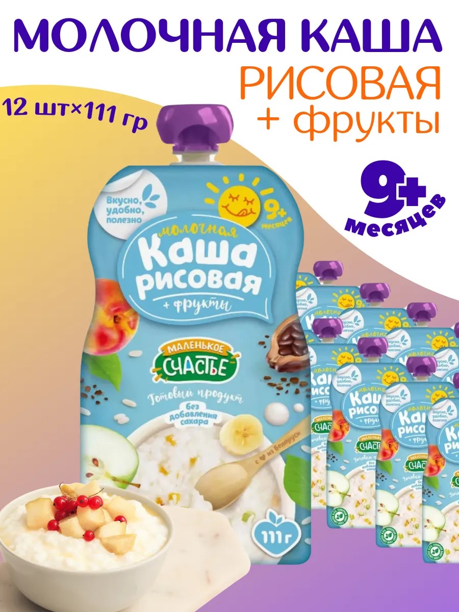 Попробуйте нашу кашу молочную рисовую с фруктами от Маленького счастья - это идеальный выбор для заботливых родителей, которые хотят дать своим детям только лучшее!