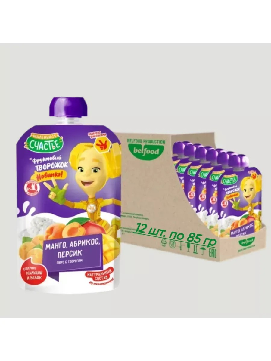 Маленькое счастье Фруктовый Творожок Манго Абрикос 85г 12 шт