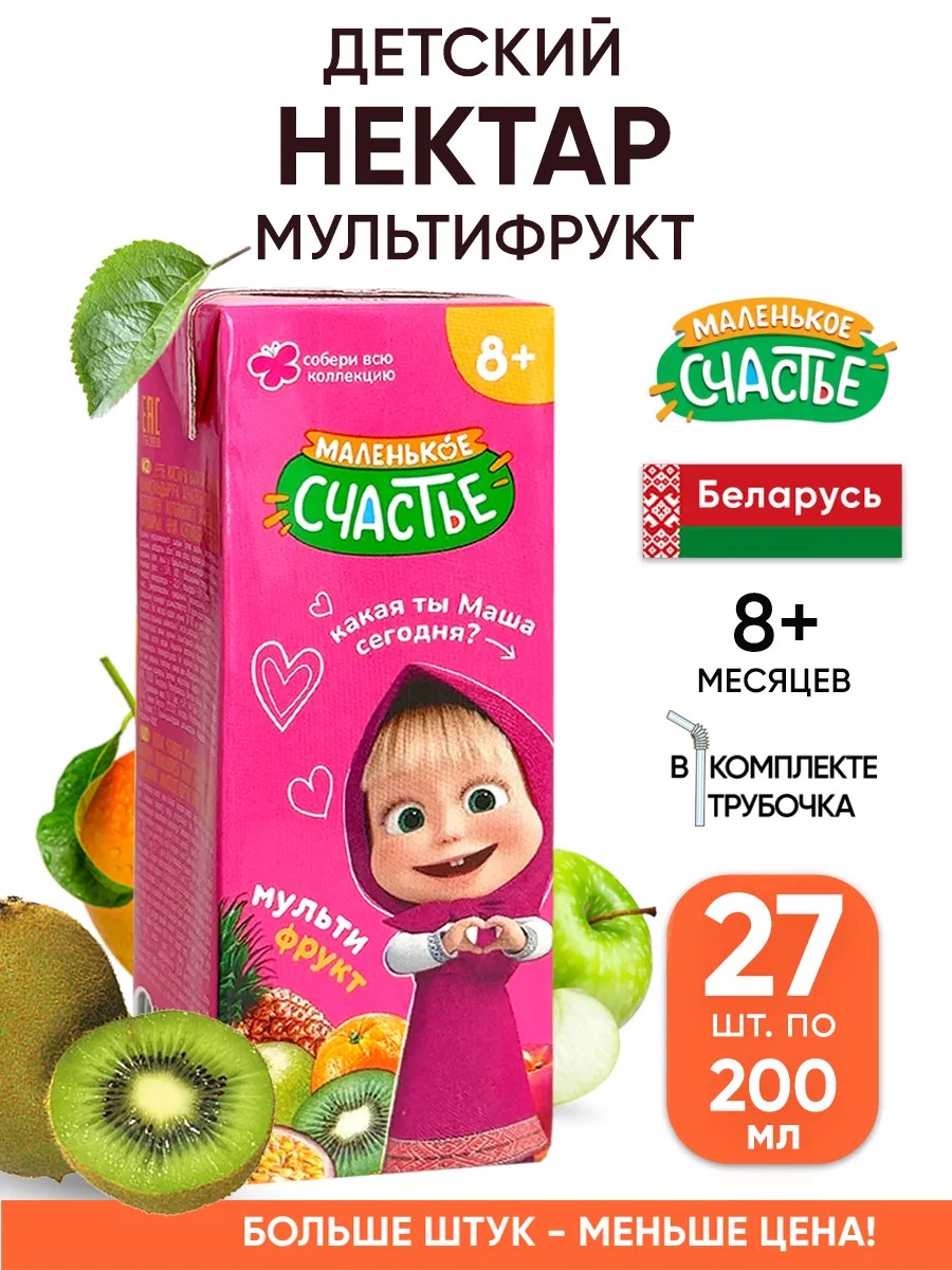 Маленькое счастье Мультифрукт сок детский 200 мл упаковка 27 шт с трубочкой