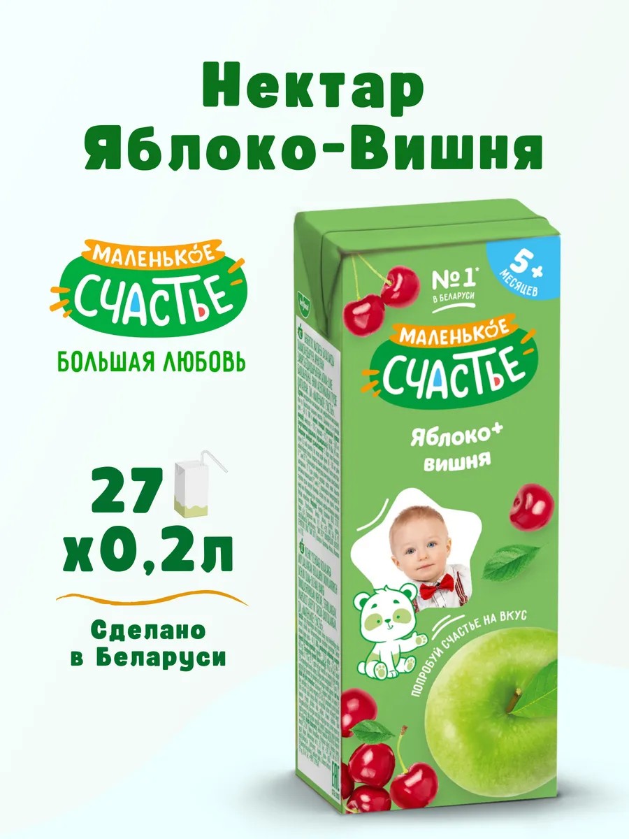 Маленькое счастье Нектар Яблоко - Вишня, 27шт по 200мл, Беларусь