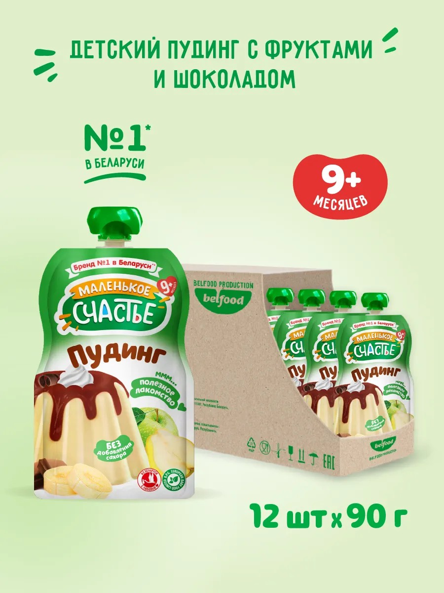 | Полное наименование товара | Пюре детское фруктовое Пудинг без сахара с фруктами и шоколадом 90г 12 шт с 9 месяцев |