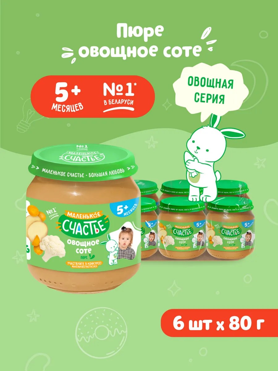 Маленькое счастье Пюре детское Овощное соте 6 шт по 80 г с 5 месяцев