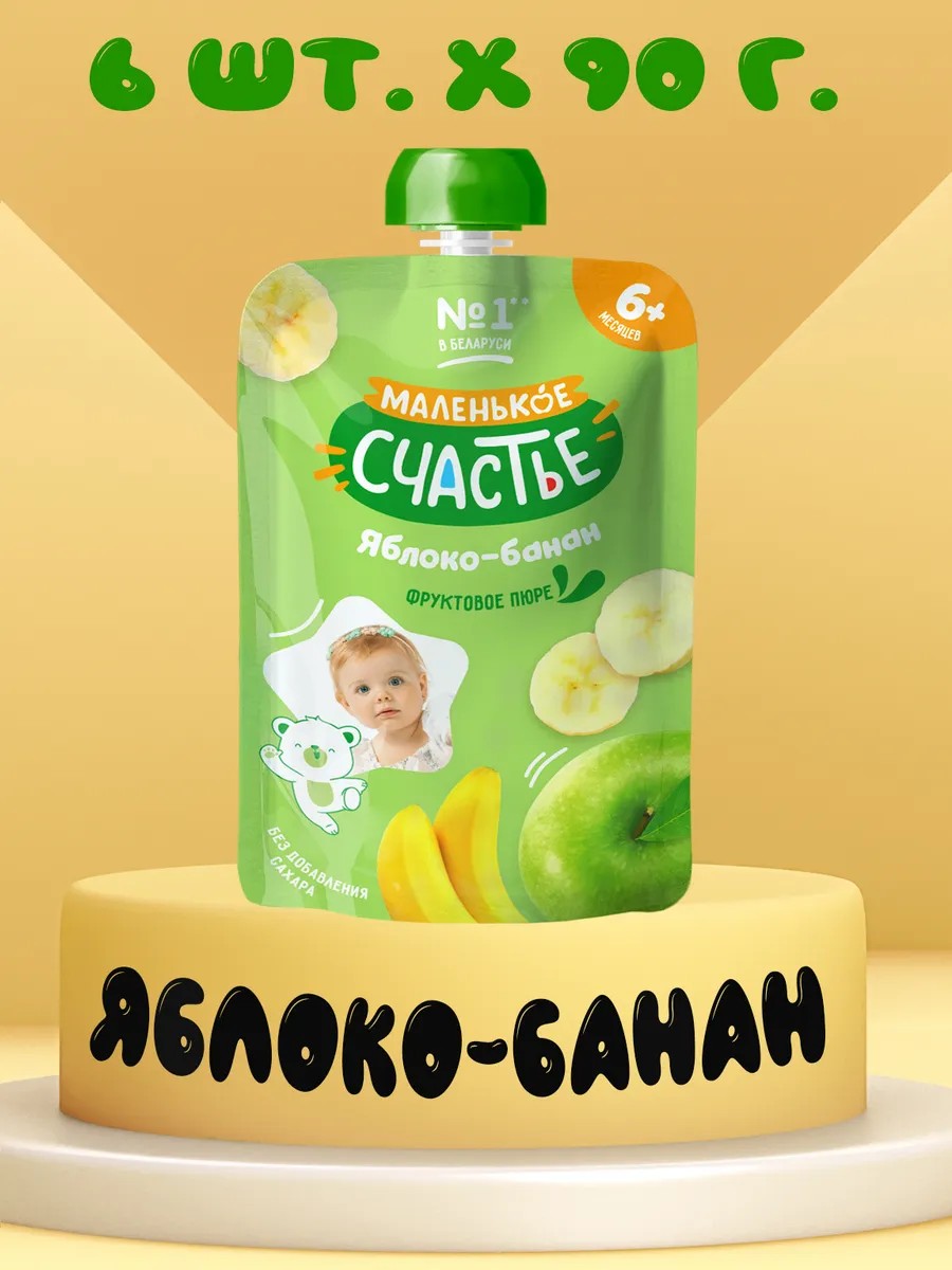 Маленькое счастье Пюре фруктовое яблоко-банан, 6 шт х 90 г, Пауч