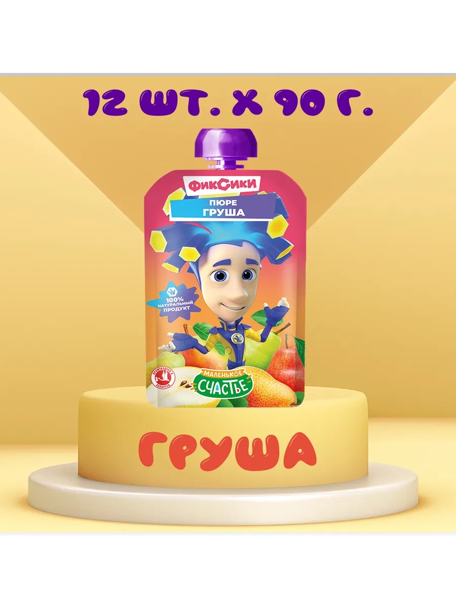 Маленькое счастье Пюре фруктовое Фиксики груша, 12 шт х 90 г, Пауч