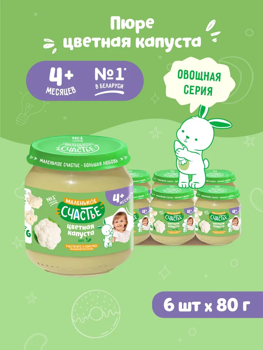 Маленькое счастье Пюре овощное детское Цветная капуста 6 шт по 80г с 4 месяцев