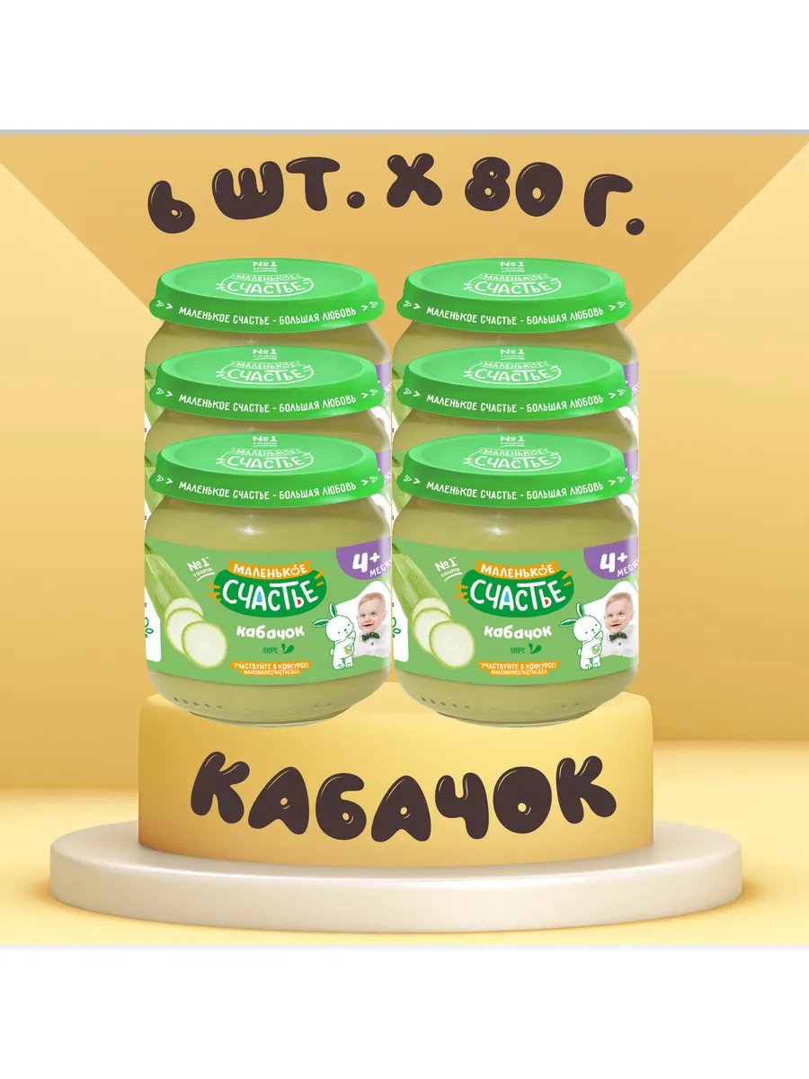 Маленькое счастье Пюре овощное Кабачок, 6 шт х 80 г