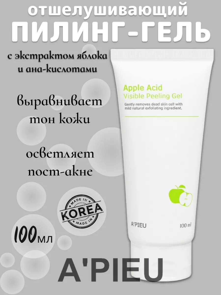 Отшелушивающий пилинг-гель с экстрактом яблока A'pieu Apple Acid Visible Peeling Gel делает кожу гладкой, ровной и бархатистой.