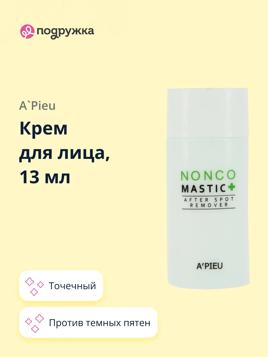 A`PIEU NONCO MASTIC+ Korean spot cream for the face against dark spots targets visible skin imperfections, promoting its regeneration and accelerated renewal of damaged cells. Active microelements and enzymes of coralline extract normalize blood microcirculation, helping to relieve inflammation and prevent further irritation. Centella asiatica stimulates cellular metabolism, provides additional nutrition and enriches the deep layers of the epidermis with oxygen.