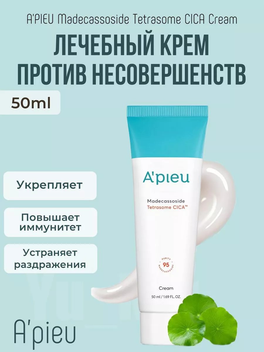 Лечебный крем против несовершенств A'PIEU Madecassoside 2x Cream с мадекассосидом. Главными активными компонентами средства являются мадекассосид (0,1%) и вода листьев центеллы азиатской (40%). Крем станет отличным помощником в борьбе против различных проблем кожи: обезвоженность, розацеа, шелушение, акне, сухость и покраснения. Особенно рекомендуется для обладательниц чувствительной кожи — средство укрепляет защитный барьер, повышает местный иммунитет, снимает красноту и устраняет раздражения. Благодаря легкой консистенции крем подходит для любого типа кожи, быстро впитывается и не оставляет на лице пленки и жирного блеска. При ежедневном использовании внешний вид кожи заметно улучшается — тон лица становится ровным, исчезают покраснения, уменьшается видимость сосудов, сужаются поры, прыщики проходят заметно быстрее, пропадает чувство сухости и стянутости. Мадекассосид — это чистый изолят, активный компонент, выделенный из центеллы азиатской. Он подходит для кожи любого типа, направлен на общее оздоровление и повышение иммунитета кожи, а его главные свойства — противовоспалительное, заживляющее и омолаживающее действие. Главные функции: способствует заживлению и восстановлению кожи за счет регенерации клеток эпидермиса, подтягивает и повышает эластичность кожи, уменьшает глубину и видимость морщин, контролирует и снижает воспаления на коже, укрепляет сосуды и устраняет покраснения. Экстракт листьев малины повышает эластичность кожи, увлажняет, разглаживает мелкие морщинки, улучшает состояние жирной кожи, склонной к воспалениям. Экстракт листьев зеленого чая укрепляет стенки сосудов и капилляров. Обладает антиоксидантным, противомикробным и противовирусным действием. Подходит для кожи всех типов, в особенности для чувствительной, проблемной и обезвоженной кожи. Способ применения: Нанесите крем завершающим этапом ухода. Идеальное средство для проблемной кожи, при розацеа, против акне, для сужения пор на лице. Производитель Корея оригинал.