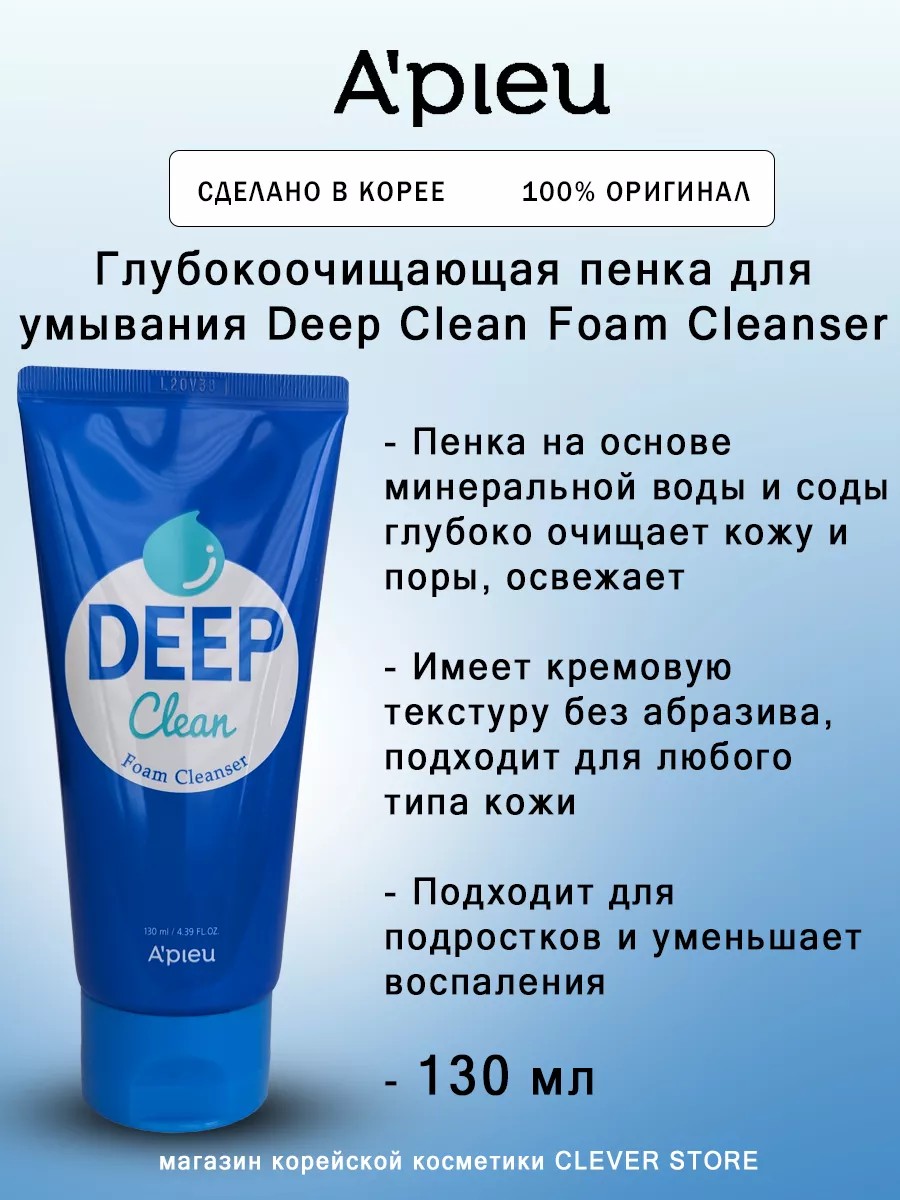 В поисках идеального средства для умывания, которое действительно обеспечит вашей коже глубокое очищение и освежающий уход? Попробуйте глубокоочищающую пенку для умывания A'PIEU Deep Clean Foam Cleanser - 130мл. Этот продукт сочетает в себе высокую эффективность и нежность кожи, обеспечивая комплексный уход за повседневным использованием.