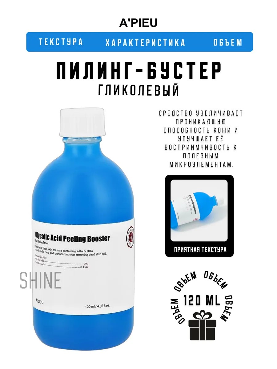 Гликолевый пилинг-бустер Apieu Glycolic Acid Peeling Booster — это мягкий пилинг, содержащий AHA-кислоту (3%), ВНА-кислоту (0.45%) и сок березы (30%).