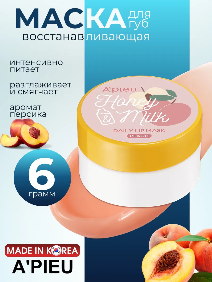 | Полное наименование товара | Восстанавливающая маска для губ A'PIEU Honey and Milk Daily Lip Mask (Peach) |