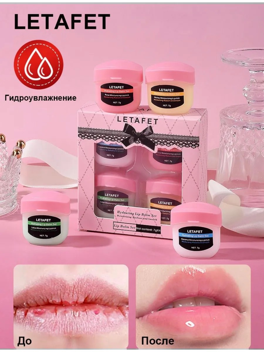 Набор увлажняющих бальзамов для губ 4 шт. подарит вашим губам нежный уход и защиту в любое время года. В набор входят 4 бальзама с различными вкусами и ароматами, которые сделают ваши губы мягкими, гладкими и увлажненными. Формула бальзамов обогащена натуральными маслами и витаминами, которые питают и восстанавливают нежную кожу губ. Компактный размер и стильный дизайн упаковки делают этот набор идеальным вариантом для handbag или косметички.