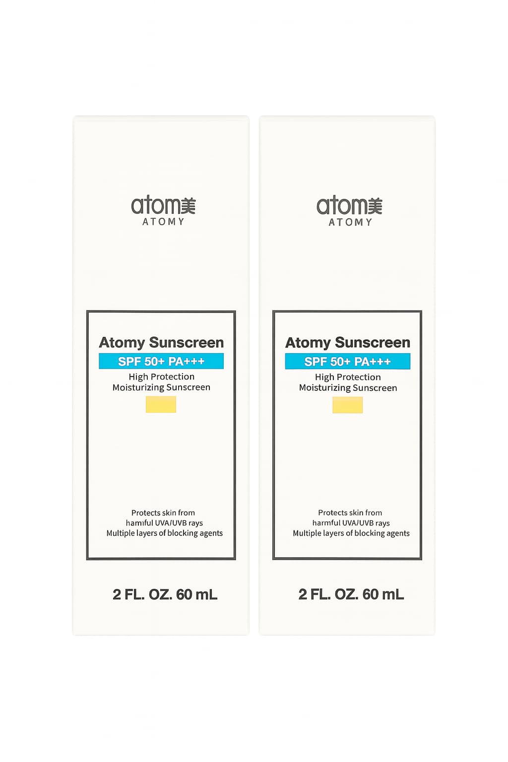 A.t.o.m.y Sunscreen SPF 50+ PA+++ High Protection Moisturizing 2 FL OZ UVA/UVB Protection Beige 2ea